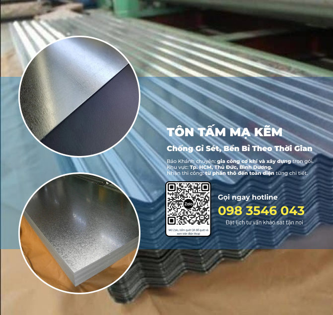 Tôn mạ kẽm là một trong những loại tôn phổ biến nhất trên thị trường nhờ lớp phủ kẽm giúp bảo vệ bề mặt khỏi gỉ sét và tác động của môi trường.