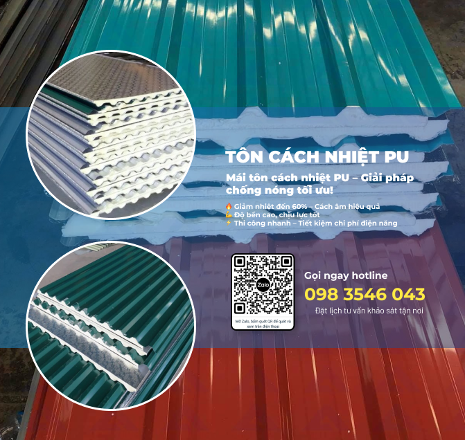 - Tôn cách nhiệt PU giúp giảm nhiệt độ mái lên đến 60%, giúp nhà luôn mát mẻ.